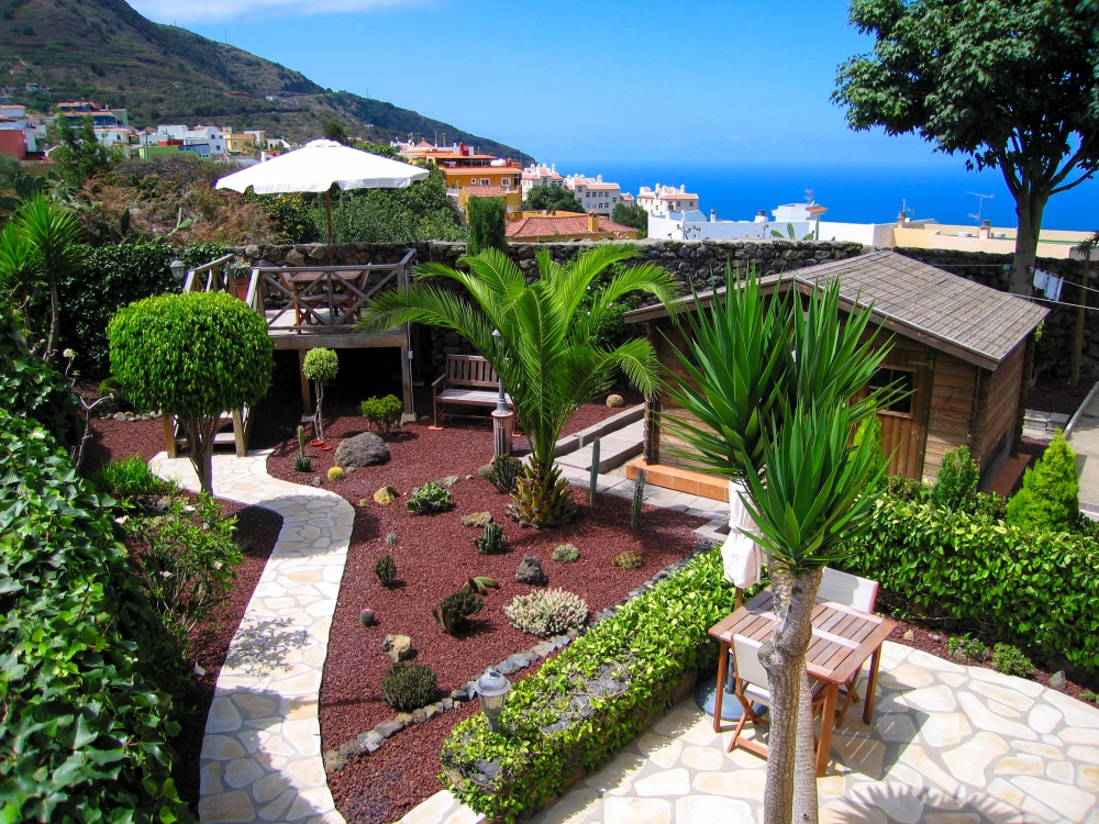 Zu Ihrem separaten Fincahaus gehört eine möblierte Terrasse mit Grillplatz und Aussicht zum Pico del Teide. Im Gartenbereich gibt es eine weitere, hochgesetzte Terrasse, von der Sie einen schönen Panoramablick bis zum Atlantik genießen können.